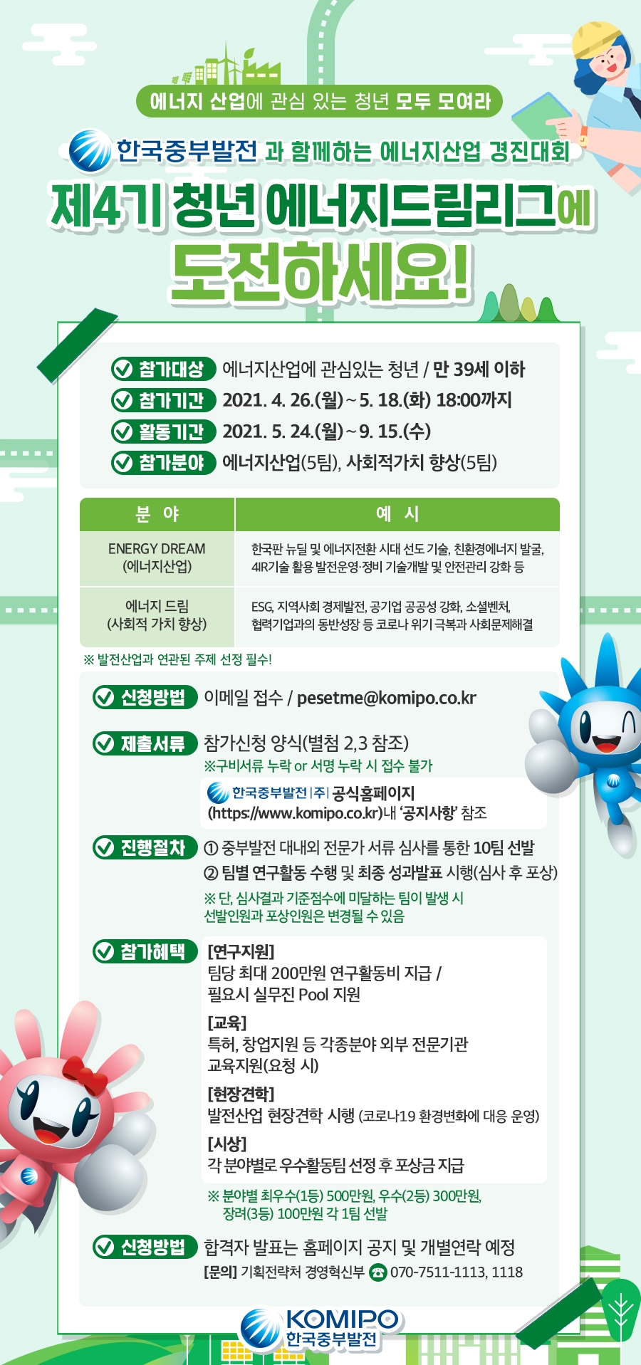 - [한국중부발전] 에너지산업 경진대회「제4기 청년 에너지드림 리그」참여 안내