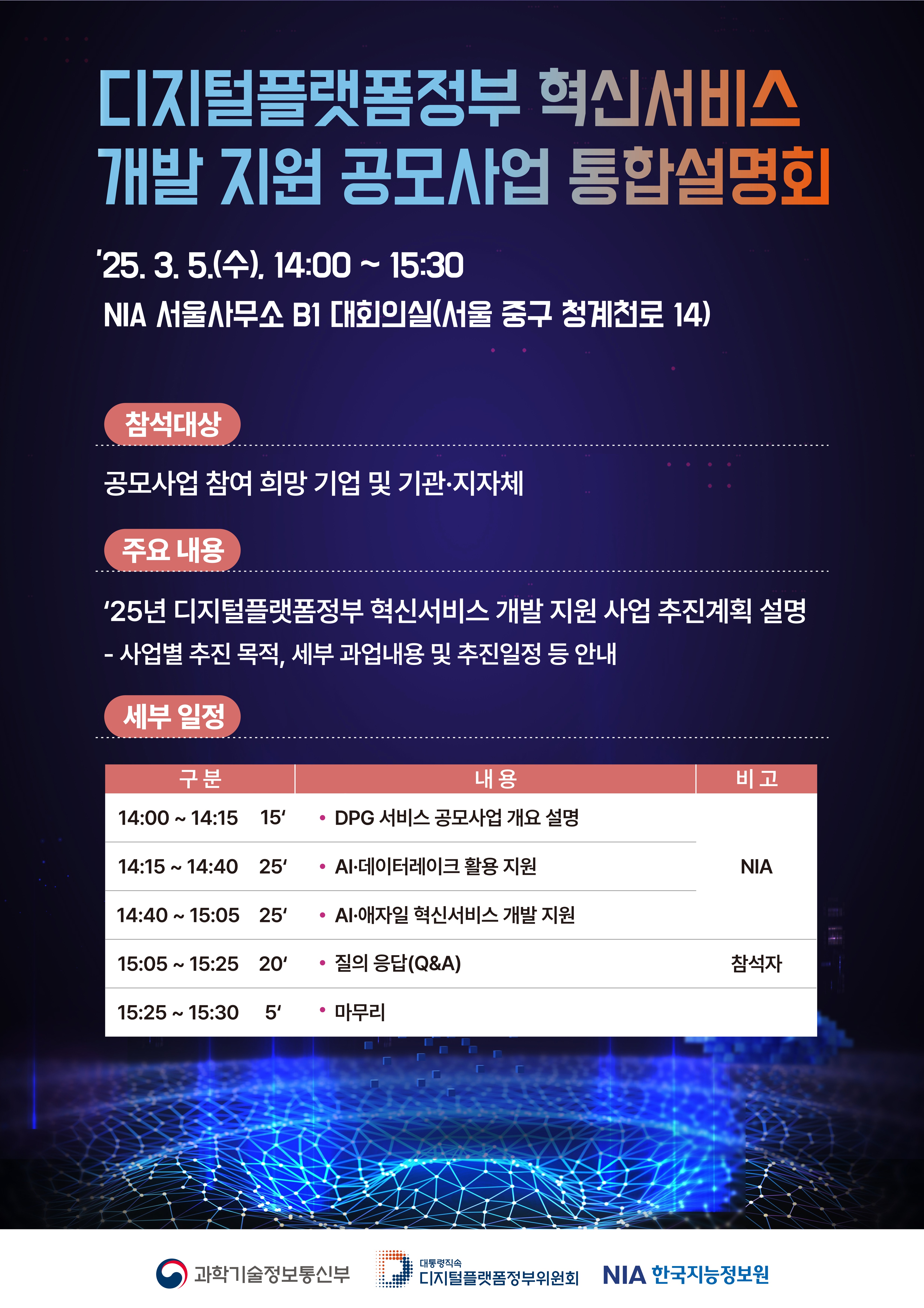 - (한국지능정보사회진흥원)2025년 디지털플랫폼정부 혁신서비스 개발 지원 공모사업 통합설명회 안내