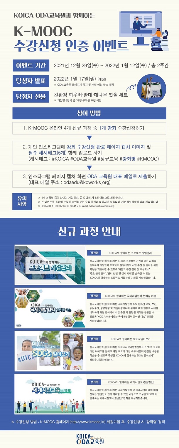 - [KOIKA] K-MOOC 신규 강의 개설 안내 및 수강신청 인증 이벤트 안내